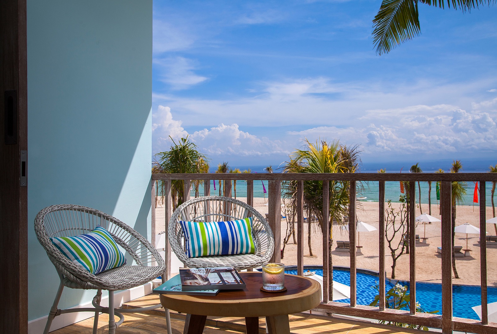 • Bean bags by the beach in the afternoon